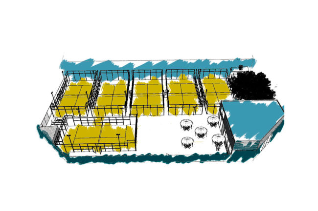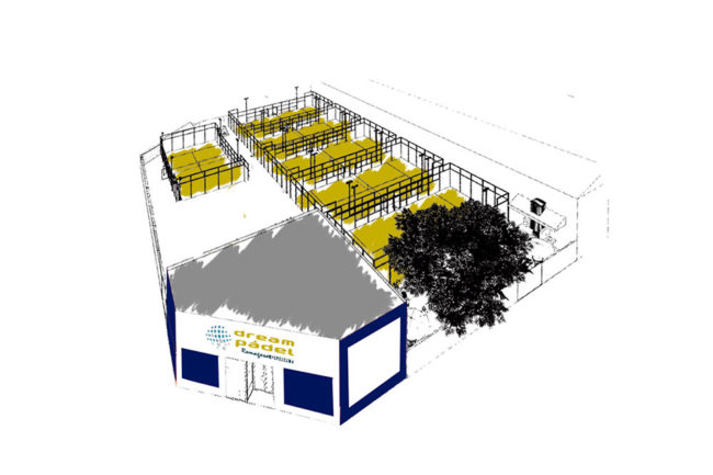 Bocetos y croquis de localización e instalaciones del Club Dream Padel Quart de Poblet. Club valenciano que abrió sus puertas en el año 2012, con 6 pistas de pádel.