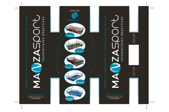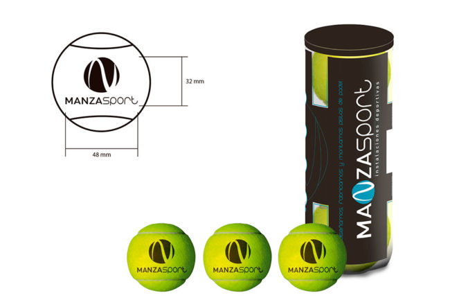 Propuesta de diseño para botes promocionales de bolas del fabricante valenciano Manzasport, especializado en el montaje de instalaciones de pistas de pádel con proyectos expandidos por todo el mundo.