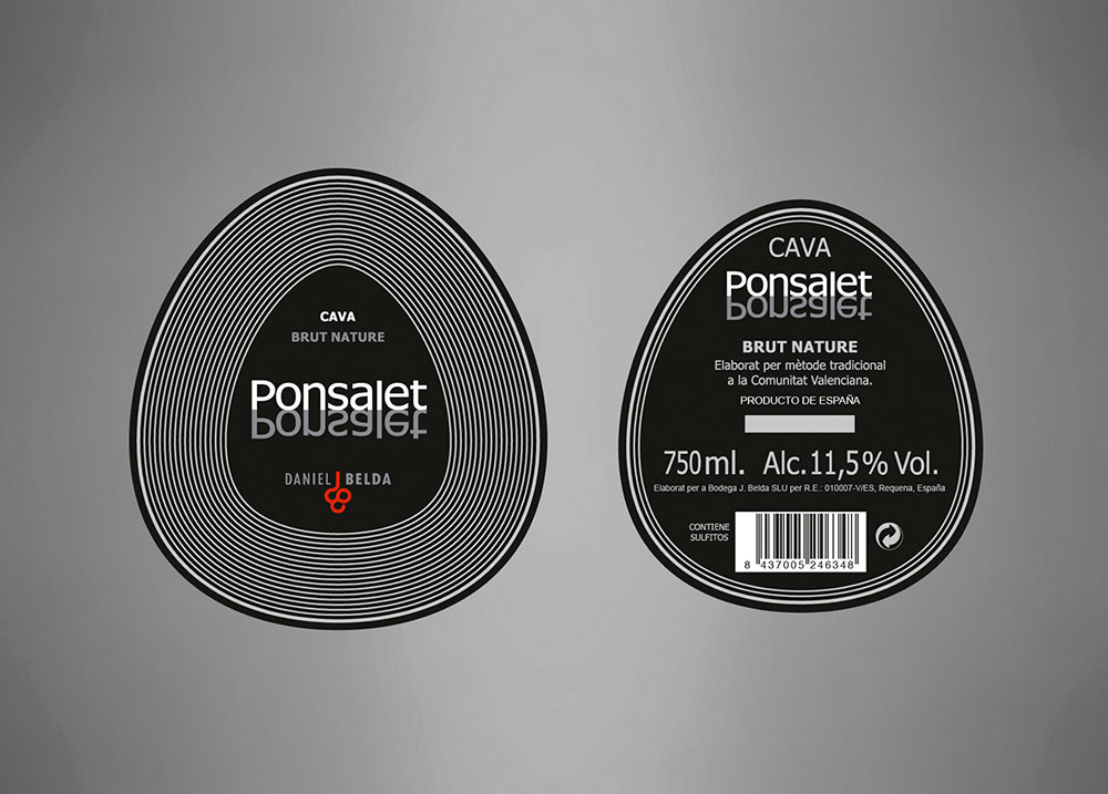 Propuesta de diseño de etiquetas y cápsulas para el Cava Ponsalet, de Bodegas Daniel Belda, cava producido en tierras valencianas por estas bodegas de Fontanars dels Alforins.