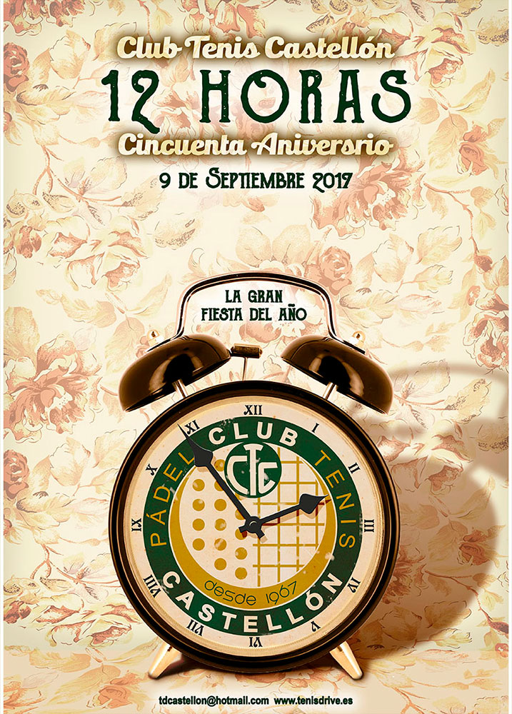Cartel de una de las fiestas deportivas más grandes y divertidas de Castellón, las tradicionales 12 horas del club de tenis. Una cita fija en el calendario socio-deportivo de cada septiembre en la capital de la plana.