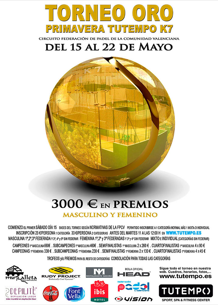 Cartel Torneo categoría oro del circuito de la Comunidad Valenciana, organizado en las instalaciones de K7, club decano del pádel en Valencia.