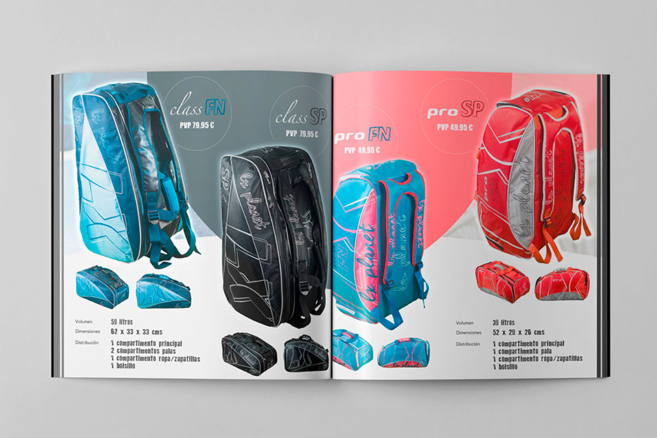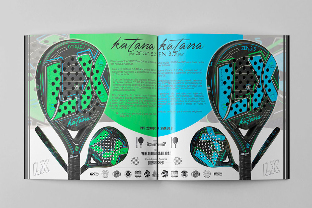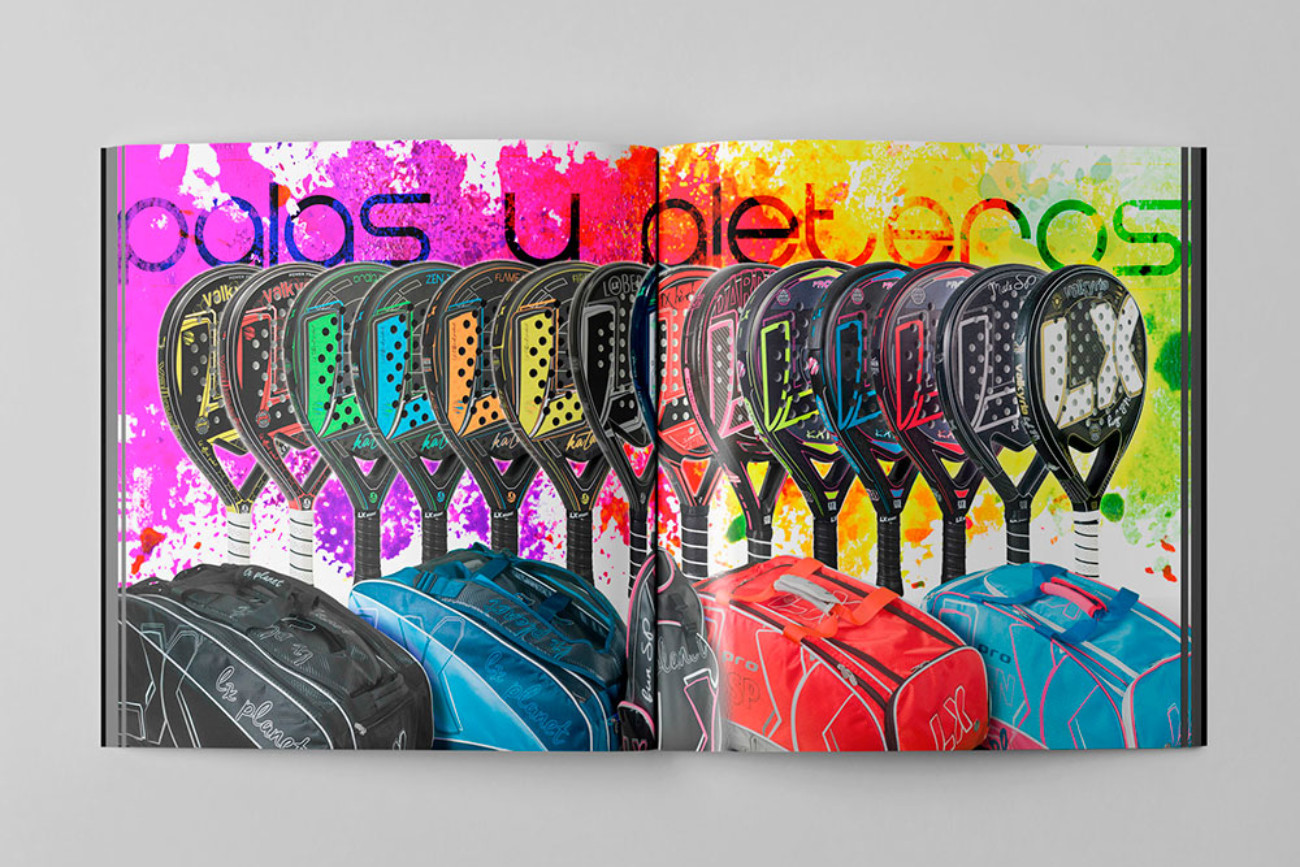 Desarrollo, diseño y maquetación del catálogo de producto de la firma valenciana de pádel LX planet, para la temporada 2018. Palas, paleteros, textil, accesorios,…