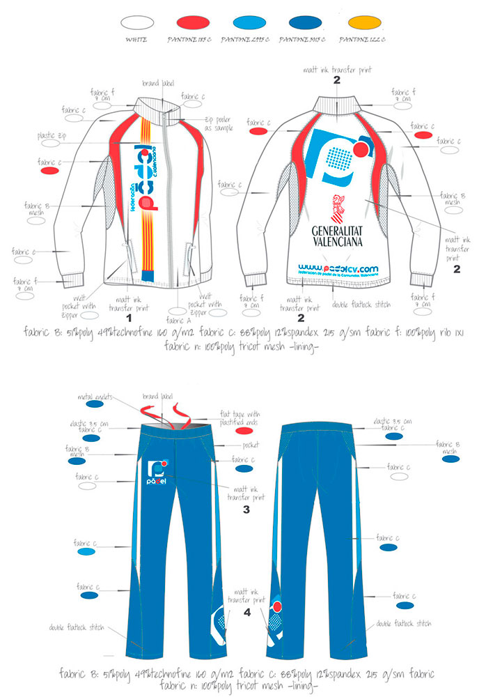 Diseño del chandal oficial de todas las selecciones de la Federación de pádel de la Comunidad Valenciana, menores, absolutos y veteranos, tanto masculinas como femeninas.