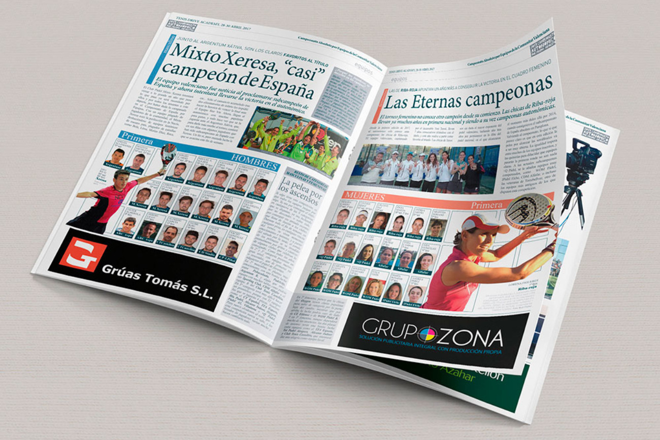 Desarrollo y edición para Tenis Drive, del Diario del torneo para el Campeonato Autonómico por Equipos Absolutos de Pádel de 2017, que cada año reúne a todos los clubes de la Comunidad Valenciana.