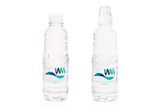 Diseño de etiquetado y envasado para los distintos formatos y botellas del agua mineral WM, producida por Fusion Weymax para su distribución en el extranjero.