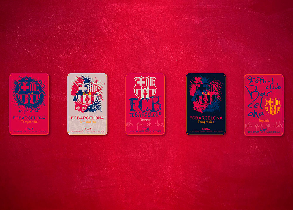 Propuesta de diseño de etiquetas para Fusion Weymax, para el envasado de botellas de vino bajo la firma de producto oficial del Fútbol Club Barcelona, dirigidos al mercado asiático.