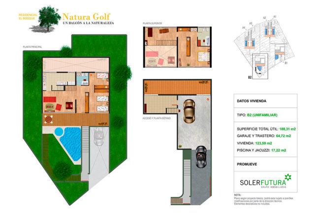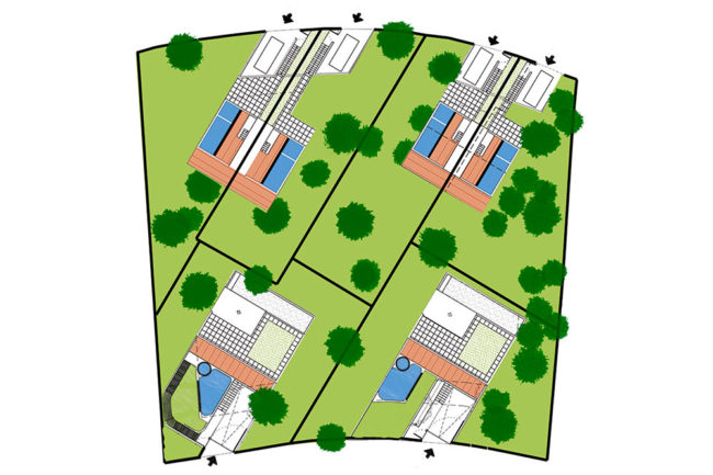 Desarrollo de montajes 3D y planos de interior para promoción de viviendas unifamiliares construidas en la urbanización El Bosque, en Valencia. Construidos por la inmobiliaria y promotora Soler Futura.