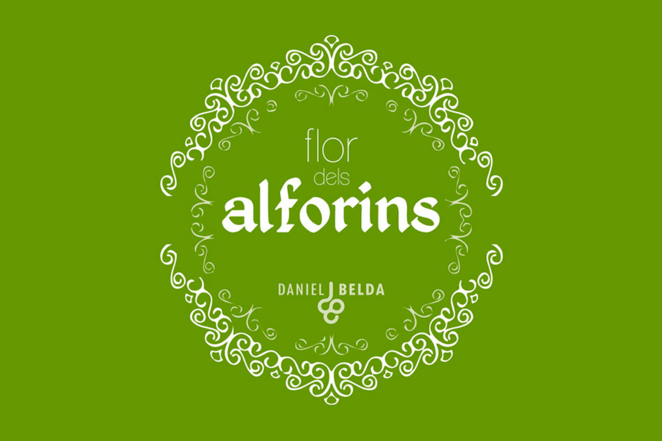 Logotipo para vinos blanco y tinto Flor dels Alforins, de bodegas Daniel Belda, con denominación de origen Valencia.