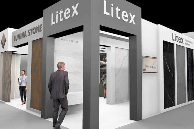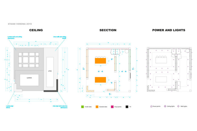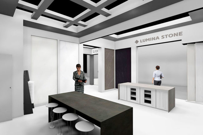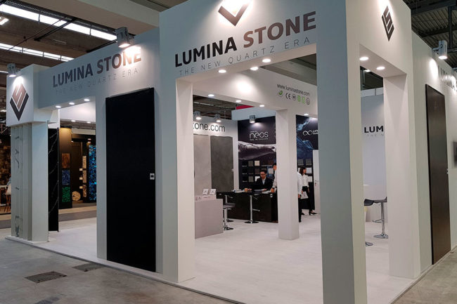 Diseño y desarrollo de planos para el stand las marcas Lumina Stone y Litex de Fasa Stone, para la feria internacional del mármol y la piedra de Verona, Marmomac 2019.