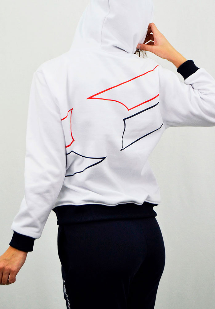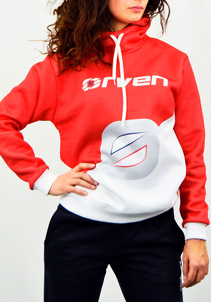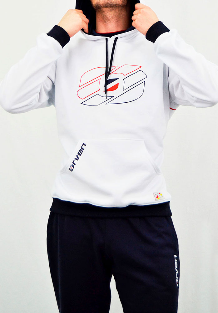 Diseño de sudaderas de algodón para la primera colección textil de la marca deportiva Orven Sport. Capucha, bolsillo canguro, y diseños en serigrafía y sublimación.