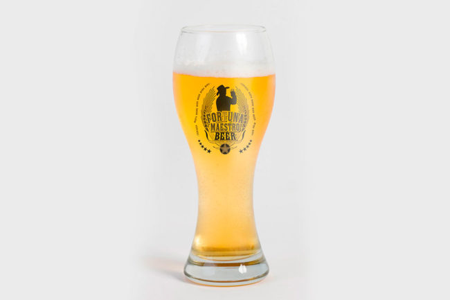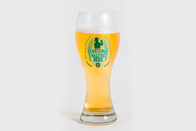 Propuesta de diseño merchandasing para vaso de cerveza Fortuna Maestro, marca producida por Fusion Weymax para la distribución en el mercado asiático.