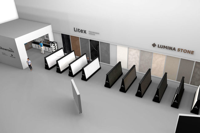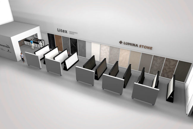 Diseño y desarrollo de planos para el warehouse de Fasa Stone en Bruselas, dirigido inicialmente a las firmas de encimeras Lumina Stone y Litex Surface.